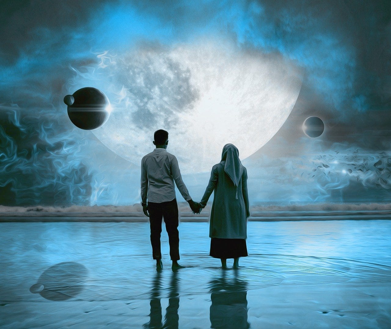 Pixabay.com sends me emails when the contributors I follow upload new images. When I saw this image of the couple and the full moon, the words “he promised her the moon” immediately popped into my thoughts. And, I framed this phrase in a positive sense, rather than its colloquial meaning.